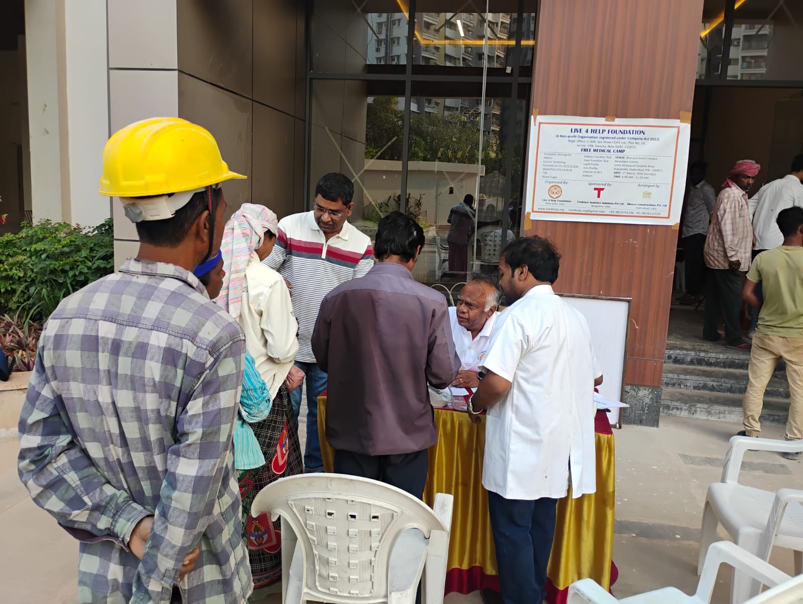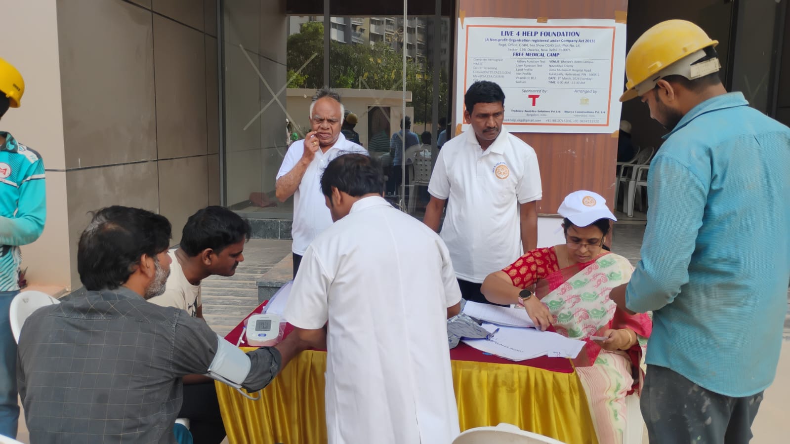 On March 1, 2026, Live 4 Help Foundation organized a Free Medical Camp at Bhavya’s Avani Society, Kukatpally, Hyderabad – 500072, reaffirming its commitment to bringing essential healthcare to communities that need it the most. The camp served daily wage workers from Jharkhand, West Bengal, and Orissa, along with domestic helpers, housekeeping staff, and security personnel—many of whom have limited or no access to regular medical care.
