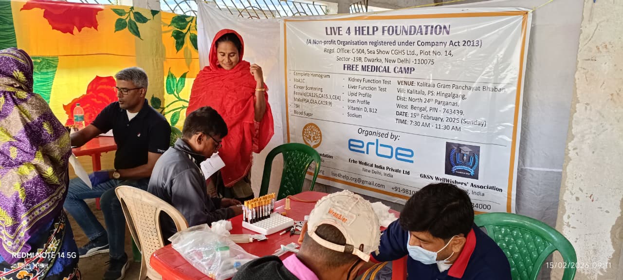 The Live 4 Help Foundation is pleased to share the successful completion of its Medical Camp, held on 15 February 2026 at the Kalitala Gram Panchayat Office, Hingalganj, North 24 Parganas – the last human-inhabited village of the Sundarbans at the India–Bangladesh border.